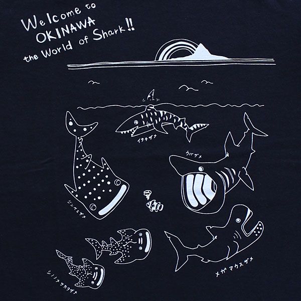 いろいろなサメをスケッチ風に描いたデザインです。