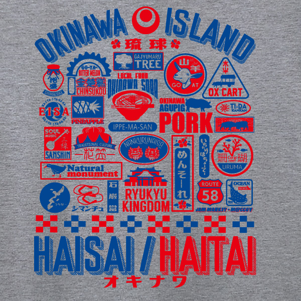 「チャンプルー」とは沖縄の方言。ごちゃ混ぜという意味。その名の通り沖縄のモノや言葉をチャンプルーにしたデザイン。